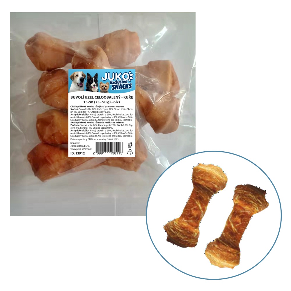 Uzel buvolí obalený kuřecím masem JUKO Snacks 15 cm (6 ks)
