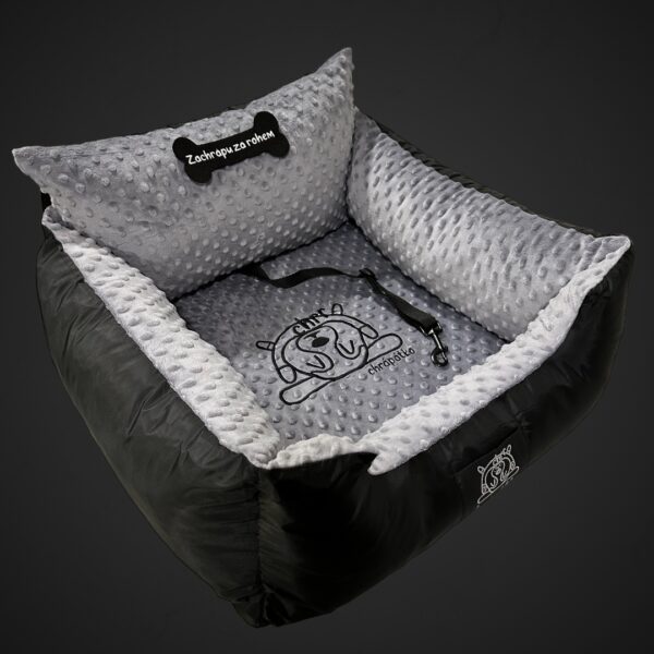 Luxusní materiály, prémiová výšivka na potahu matrace s logem Chrápátka a nášivka na předním mantinelu spolu s pořádnou vycpávkou donutí vašeho psa doslova zachrápat!