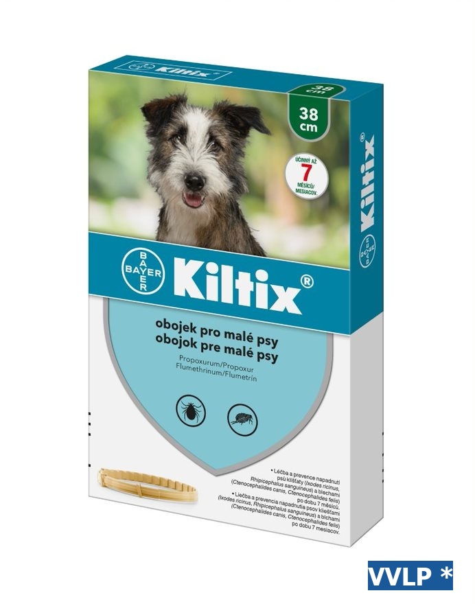 Dávkování a způsob podání: Pro malé psy je určen jeden obojek o délce 38 cm (12,5 g). Pouze pro vnější použití.