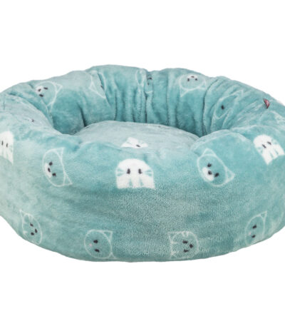 682 KčKulatý pelíšek MIMI 50 cm, motiv kočičí hlavy, šalvějová – LIMITOVANÁ NABÍDKA