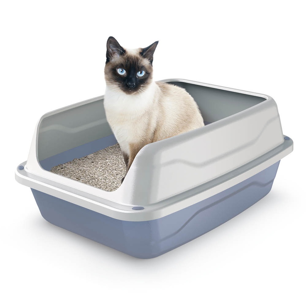 Otevřené, prostorné wc pro kočky s vysokým okrajem z kvalitního odolného plastu.